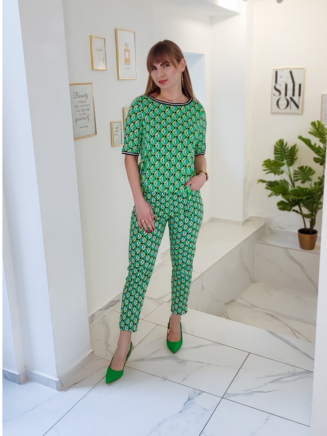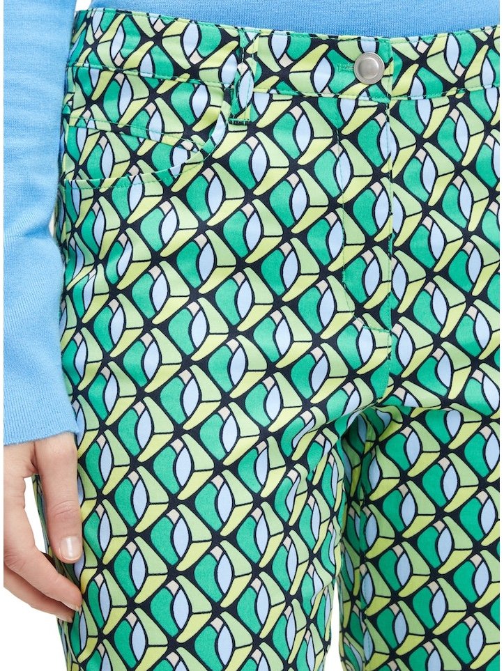Odkryj wyjątkowe wzorzyste spodnie 3/4 od Betty Barclay, które są kwintesencją nowoczesnej elegancji i wygody. Wykonane z mieszanki 97% bawełny i 3% elastanu, oferują nie tylko trwałość i miękkość, ale również idealne dopasowanie dzięki delikatnej elastyczności materiału. Wyposażone w praktyczne kieszenie, zapinane na guzik i zamek błyskawiczny. Unikalny wzór w odcieniach zieleni i niebieskiego dodaje dynamiki każdej stylizacji.