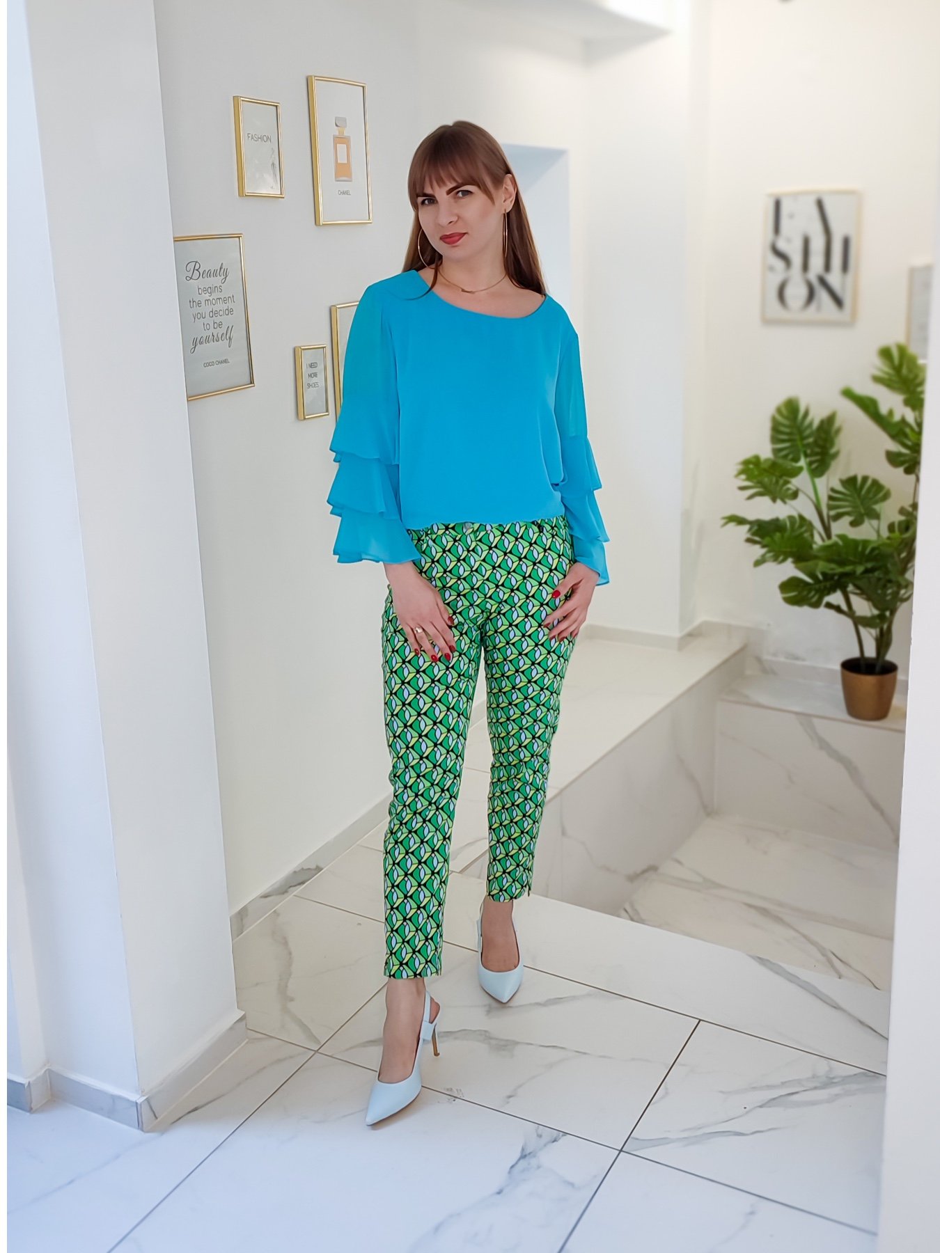 - Wzór: Graficzny w odcieniach zieleni i niebieskiego.